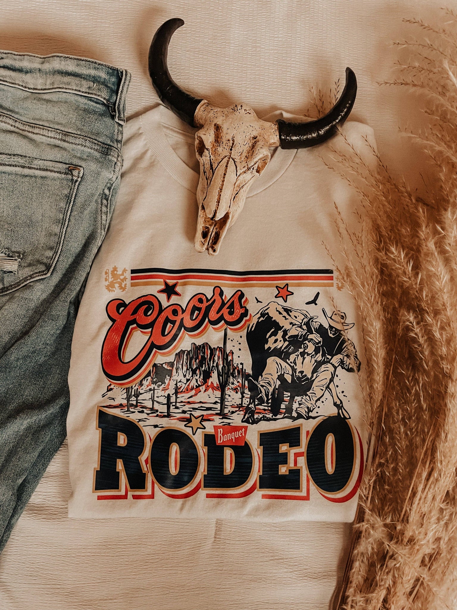 50% Cotton, 50% Polyester, Unisex Fit, White Short Sleeve Graphic Tee Coors Rodeo inspired graphic tee!
