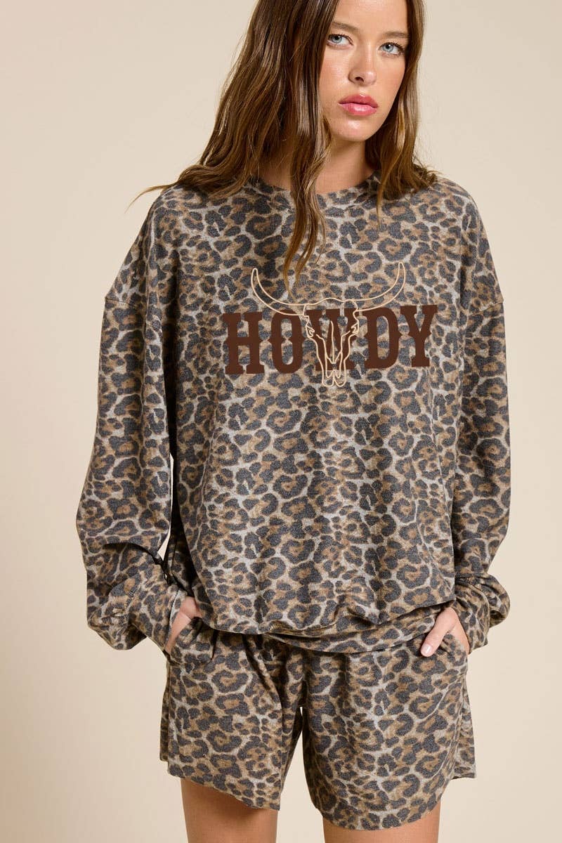 'PUFF' COW SKULL HOWDY GRAPHIC, RELAXED FRENCH TERRY L/S TEE WITH PUFFED SLEEVES